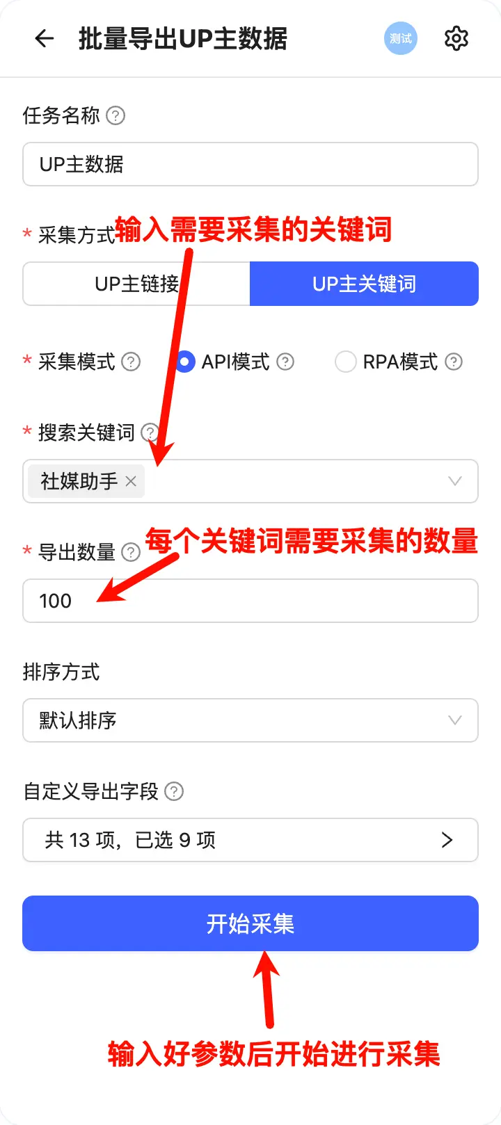 提示:建议根据实际需求设置合理的数量,避免一次性采集过多UP主导致耗时过长或触发风控。