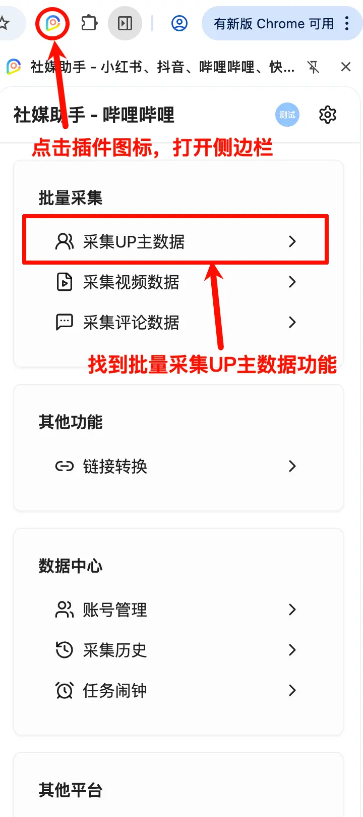 插件是通过网页端进行搜索获取的数据,单个关键词可采集的UP主总数上限会受到平台限制,并不是输入多少就能采集到多少,平台不会提供指定关键词的全量搜索结果。