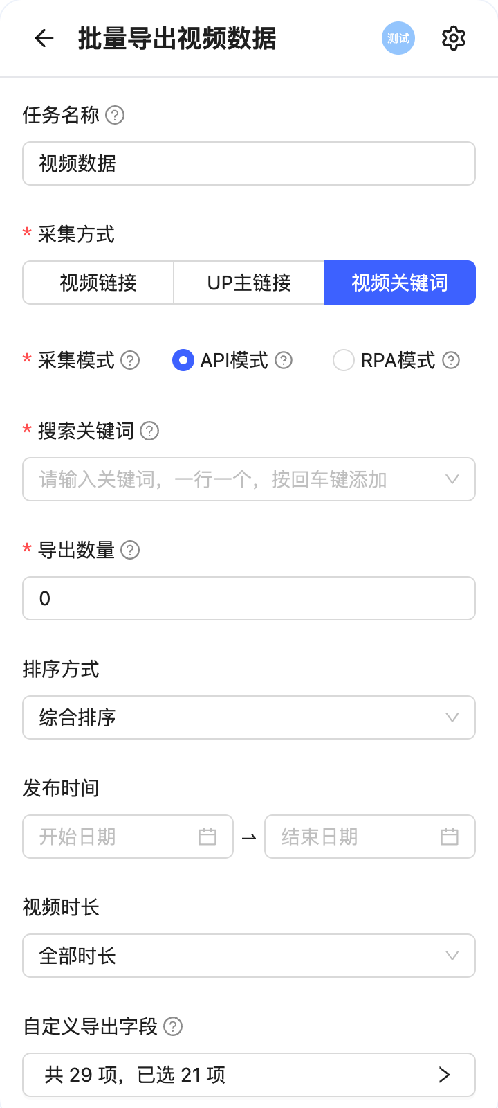 插件是通过网页端进行搜索获取的数据,单个关键词可采集的视频总数上限会受到平台限制,并不是输入多少就能采集到多少,平台不会提供指定关键词的全量搜索结果。