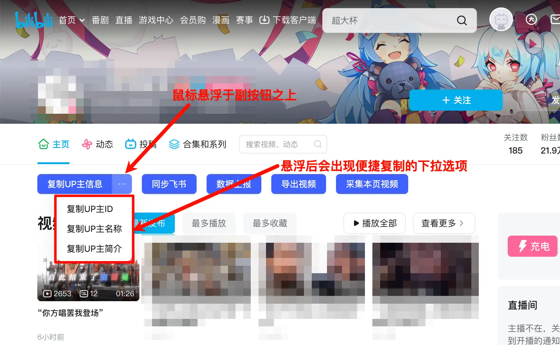 复制UP主信息
