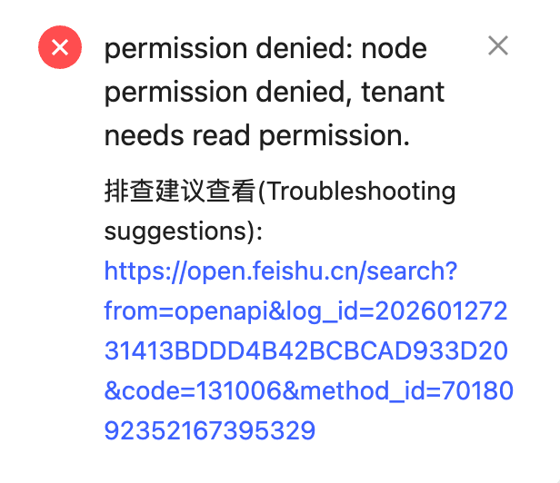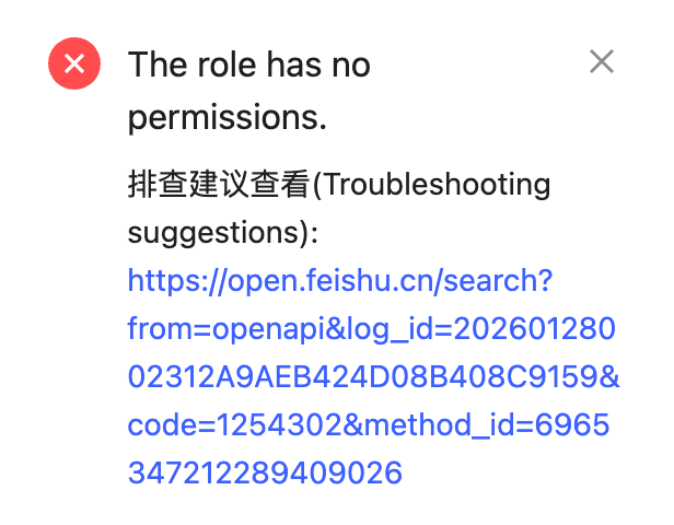 在使用社媒助手进行飞书同步时,最容易遇见的问题就是权限相关的问题。在此总结了最常见的几种权限异常情况。