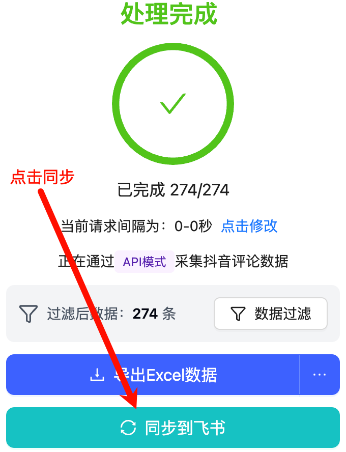 数据采集完成后,点击同步到飞书按钮,即可唤醒同步功能弹框。